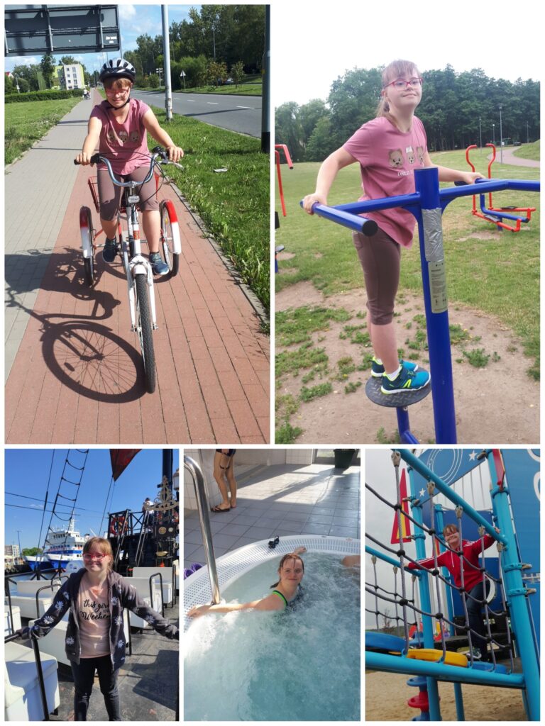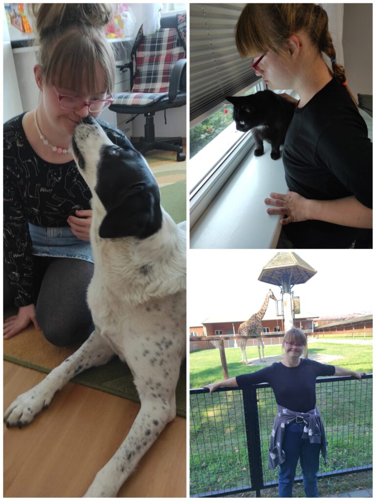 Mam na imię Monika, urodziłam się w 1999 roku z dodatkowym chromosomem w 21-szej parze w jądrach wszystkich swoich komórek, co nazywane jest Zespołem Downa. Mimo że w „zespole” raźniej ? – zespół od samego początku bardzo komplikuje moje życie. Po urodzeniu przeszłam operację wady serca pod postacią ubytku przegrody międzykomorowej typu kanałowego i ubytku przegrody międzyprzedsionkowej, PDA- powikłaną niewydolnością krążeniowo oddechową i sepsą. Z powodu długotrwałej intubacji wykonano mi tracheotomię.
